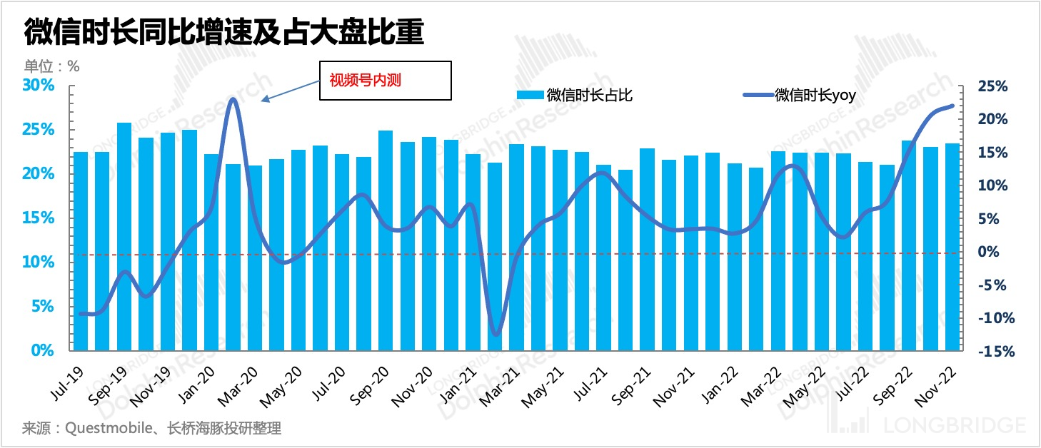 6)总体而言,大盘时长也是自三季度开始增长,腾讯系的微信、字节的抖音极速版,是主要推力。