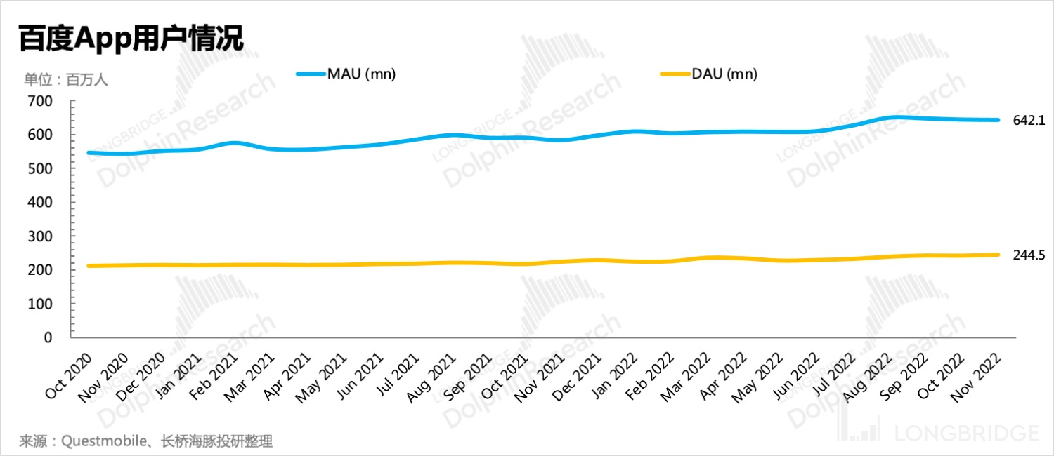 (2)电商广告,包括直营电商会是百度广告的未来增长动力。作为一个月活也有近 6.5 亿,日活 2.5 亿头部生态,在互联网生态互相打通之后,百度显然获得了更多的红利,原本微幅增长的趋势自去年下半年以来有了一些提速。虽然各家生态都在发力做搜索,但从 PC 时代而来的搜索心智,百度还算首屈一指。因此从搜索习惯来说,百度的流量入口也可以说也具有一定的稀缺性。