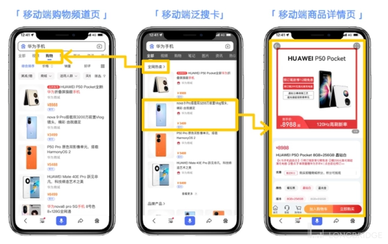 2)百度重点特色的,包括百度百科、百度知道的知识内容营销,以及围绕百度的优势流量——搜索入口,打造的首页首条链接的广告 Banner 位、购物频道的第三方电商引流位