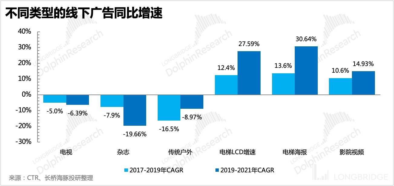 因此,尽管整体线下广告会在明年看到一个明显的修复,但并不代表全面开花,其中梯媒仍是商家品宣的首选,也意味着它会进一步侵蚀线下其他媒体广告原有份额。