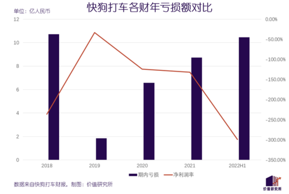 另外,在2018年~2021年四年间,快狗打车总营收为23.04亿元,净亏损累计达到了23.05亿元,基本持平。其销售及营销费用分别为5.24亿元、2.96亿元、1.95亿元和3.35亿元,占总营收的比例分别为115.7%、54.0%、36.7%和50.7%。