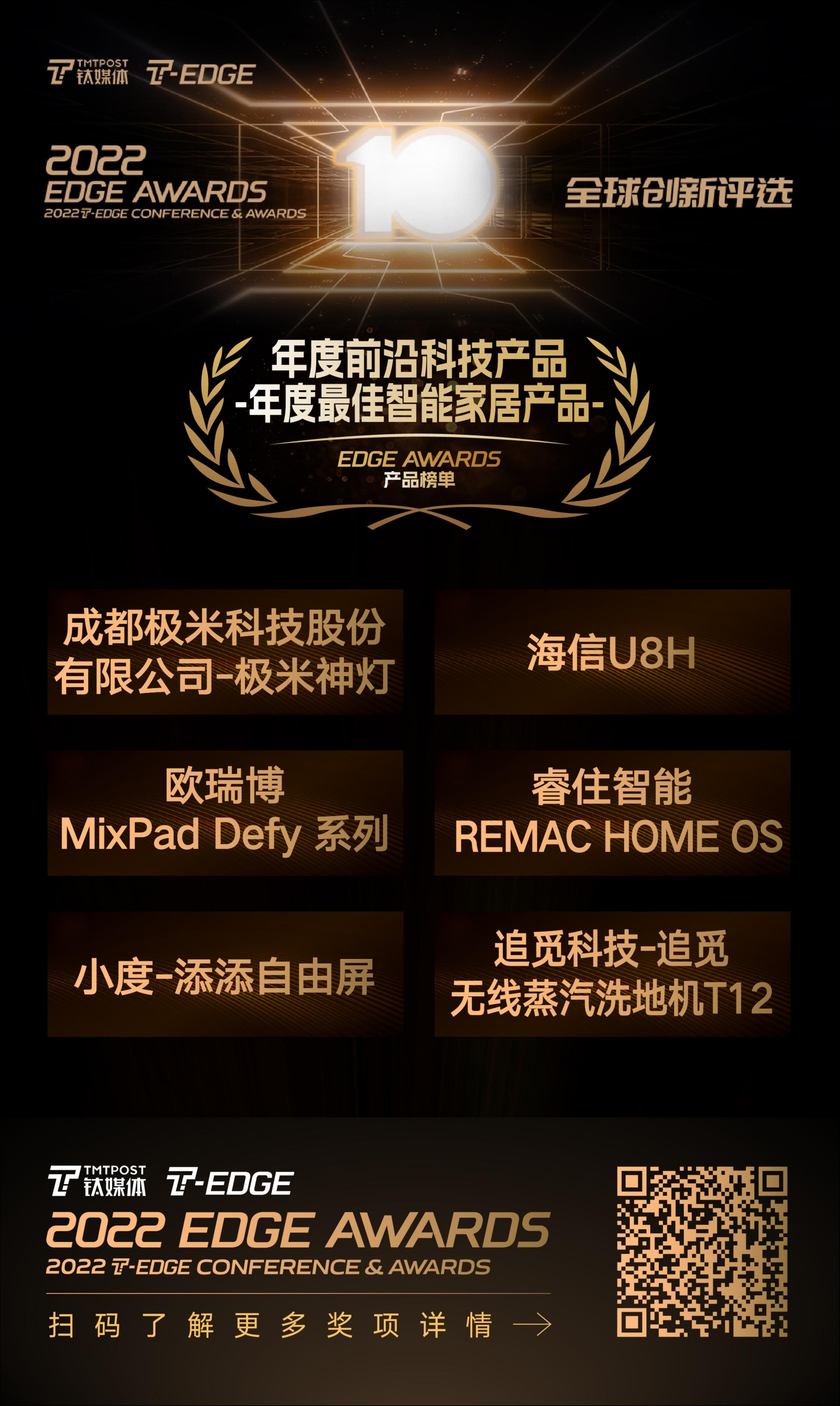 这些笃定的创新、果敢的探索以及汗水背后的成绩,理应被更多人了解与见证。2022年12月22-23日,2022 T-EDGE全球创新大会在北京盛大开启。大会用两天时间,追溯中国产业波澜壮阔的十年跌宕。而在大会现场,钛媒体App也重磅发布EDGE AWARDS 全球创新评选的奖项,希望以榜单的形式,透过这些推动行业变革的公司、个人和产品,全面展现“2022的产业图谱”。