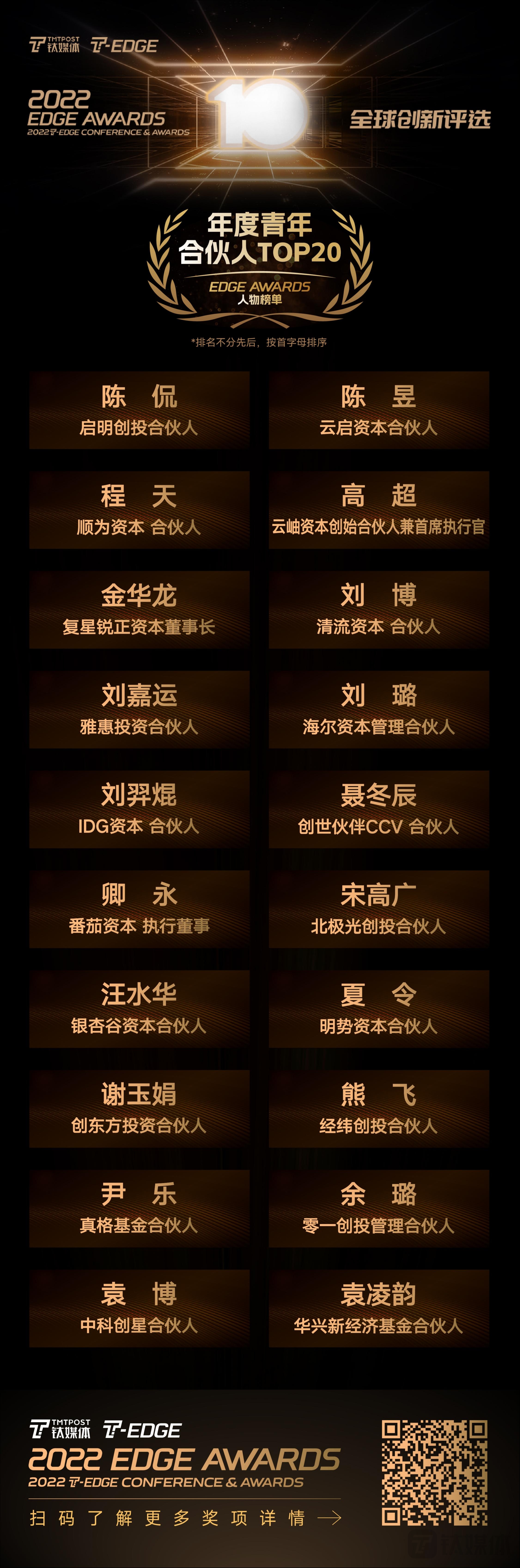12月22日,在2022 T-EDGE全球创新大会暨钛媒体十年致敬盛典上,2022 EDGE AWARDS人物榜正式发布。