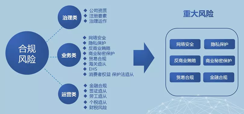 本地合规问题,是立足的根本问题。华为亚太区监管副总裁徐志东曾讲过本地合规的复杂性:“合规不单要符合所在国的法律法规,还应注意国际组织公约、国际组织规范性、欧盟法律、美国法律、客户及供应商管理规定。即使是在亚太做生意,同样要遵守欧盟法律和美国法律。”同时合规风险主要分为治理类、业务类、运营类三类,而哪一个环节无法搞定都会影响业务的推进。