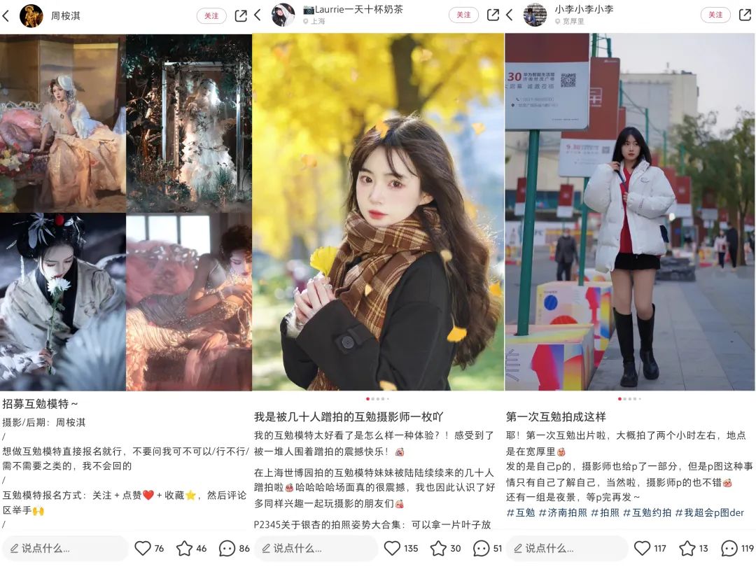 约拍到底有多火?在微博、小红书、豆瓣等平台上搜索“约拍”,不费力气就可以看到很多关于约拍的讨论。其中,微博上约拍话题累计阅读量达上百亿,小红书约拍相关话题的平均浏览量不低于千万。