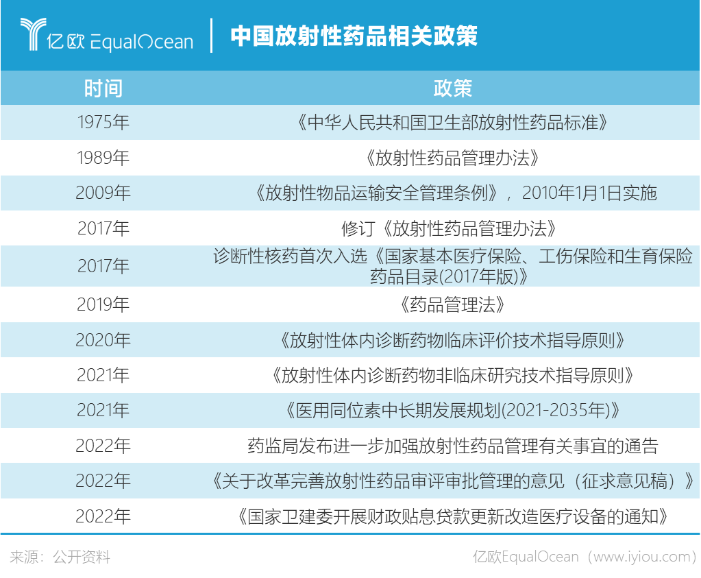 时间来到2022年9月和10月,国家药监局公开征求《关于改革完善放射性药品审评审批管理的意见》,中国同位素与辐射行业协会又出台了《核医学科建设规范(征求意见稿)》,政策的密集发布,开始推动核药产业链的发展。