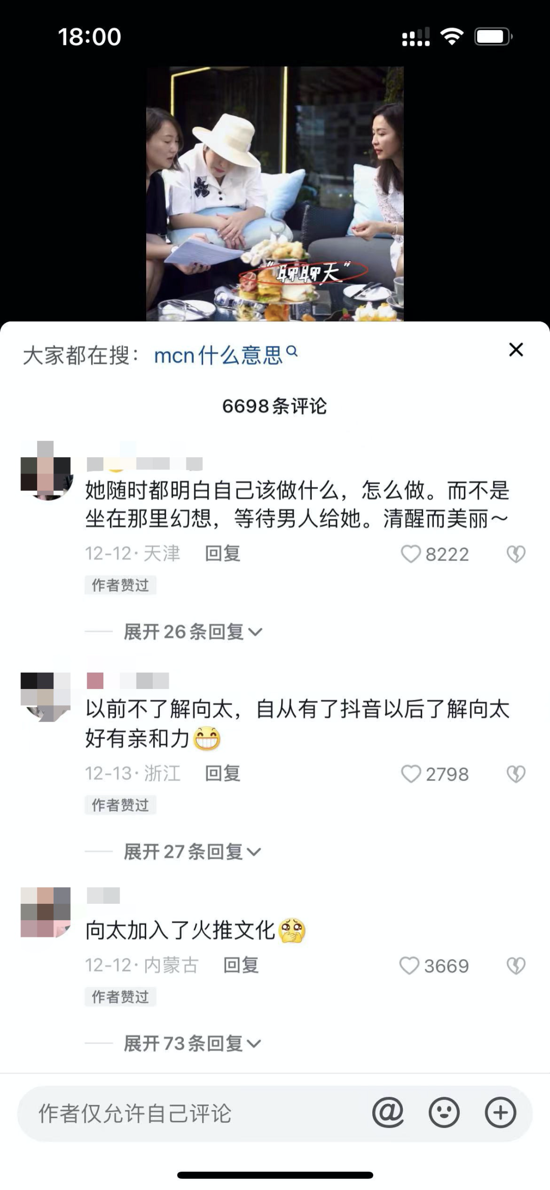 留言区的用户们评价“以前不了解向太,自从有了抖音以后,了解向太好有亲和力。”