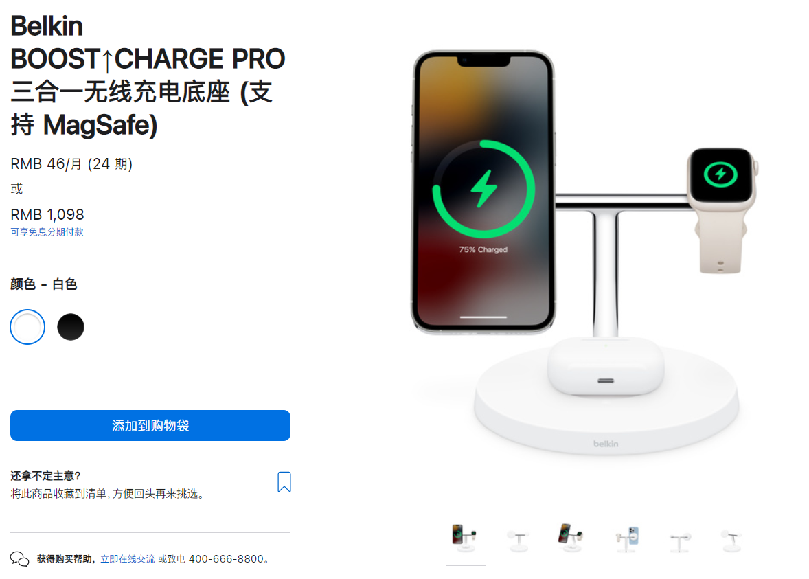 在数码行业,苹果产品一向以昂贵著称,一块抛光布能卖到145元,一根充电线最少145元。可与已经达到奢侈品级别的数码产品来说,苹果的定价还是过于保守了。例如苹果官网上架的Belkin三合一无线充电底座,售价不过1098元,而且支持24期免息。
