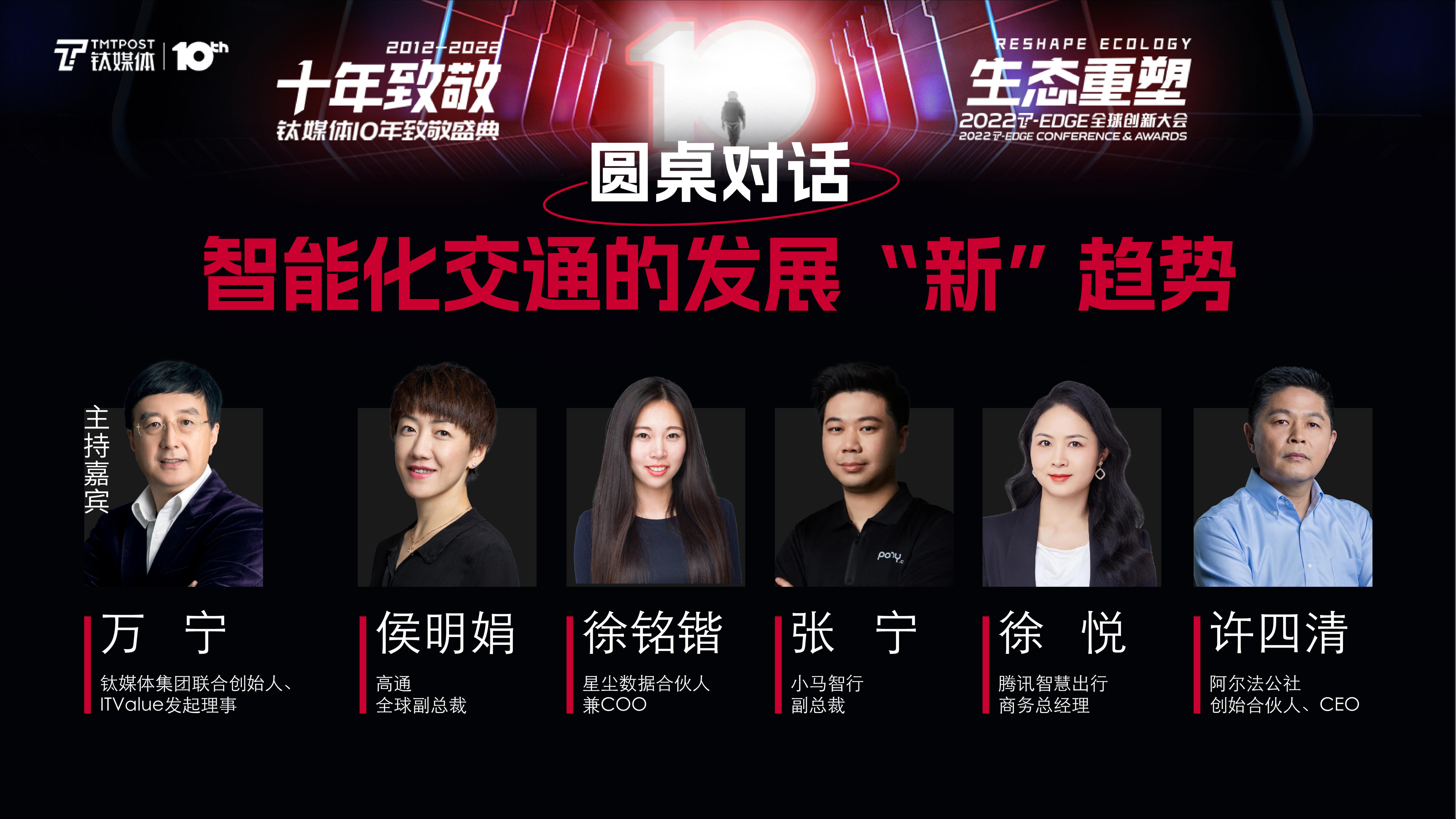 钛媒体集团联合创始人、ITValue发起理事——万宁先生开启了本次《智能化交通的发展“新”趋势》的圆桌对话。过去几年,无论新能源车自动驾驶还是智能化交通都离我们越来越近,而这也是一个风起云涌的企业创新赛道,今天我们难得请来几位嘉宾,他们分别代表各自的领域来跟我们一起探讨一下智能化交通发展的新趋势。