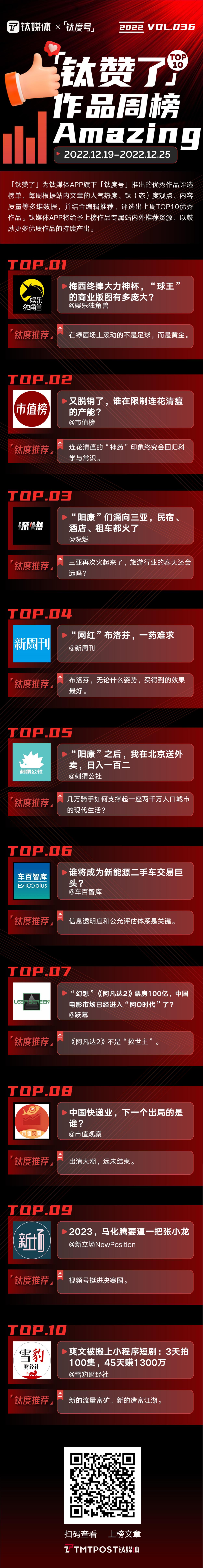 2022年12月19日—12月25日,「钛赞了」榜单第36期上榜作品为: