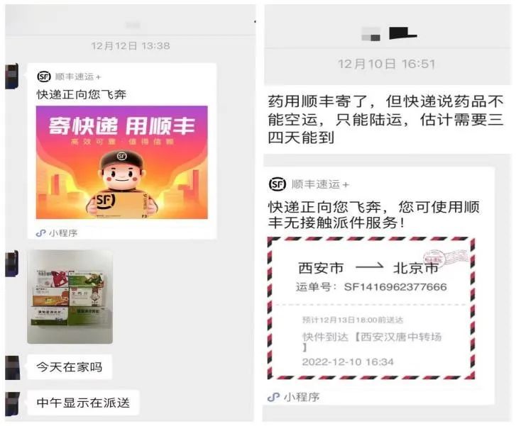 前两天家里老人告诉我,药品已经收到了,他们还把每种药又分成了三份,给我舅、姨各送了一份。