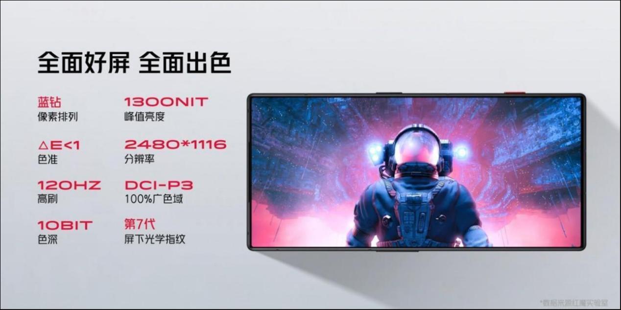 红魔8 Pro系列在屏幕上也进行了升级,搭载业界首款6.8英寸AMOLED屏下式柔性直屏,这块由红魔与京东方联合打造的UDC魔显全面屏4.0,屏占比达到了93.7%,正面观感几乎全是屏幕。同时其还解决了屏下前摄隐藏、前摄区显示效果、前摄拍摄效果等行业难题。