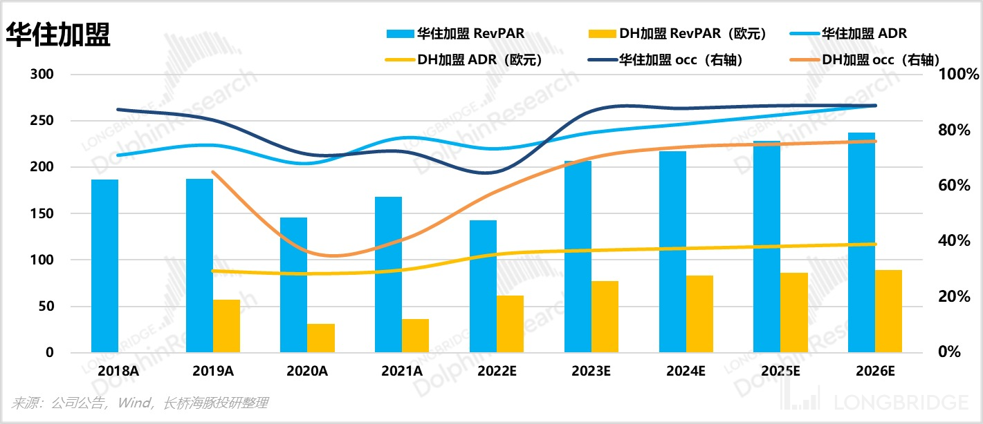 a、境内:自营方面,按照中性的假设,预计通过两年(2023-2024 年)Occ 逐渐恢复到 2019 年水平,并且保持平稳。同时参考今年前三季度实际情况以及四季度国内疫情开放程度推算今年 ADR 水平,并以此为基数逐年上调 4%。境内加盟业务同理。