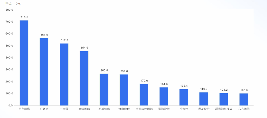 2022年国内SaaS概念上市企业总市值≥100亿元企业(8月10日数据 图源:FlashCloud)