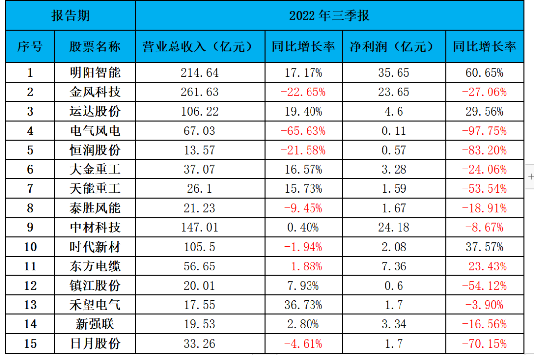 三季报显示,风电产业上市公司业绩出现大面积滑坡。虽有个别增长,但萧条渗透到风电产业链的每一个环节,涵盖整机,塔筒、法兰、叶片、主轴、海缆、铸件等。