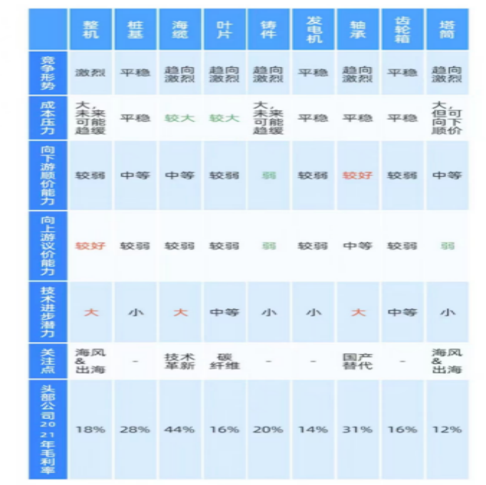 现阶段,风电产业链各环节竞争较为激烈。