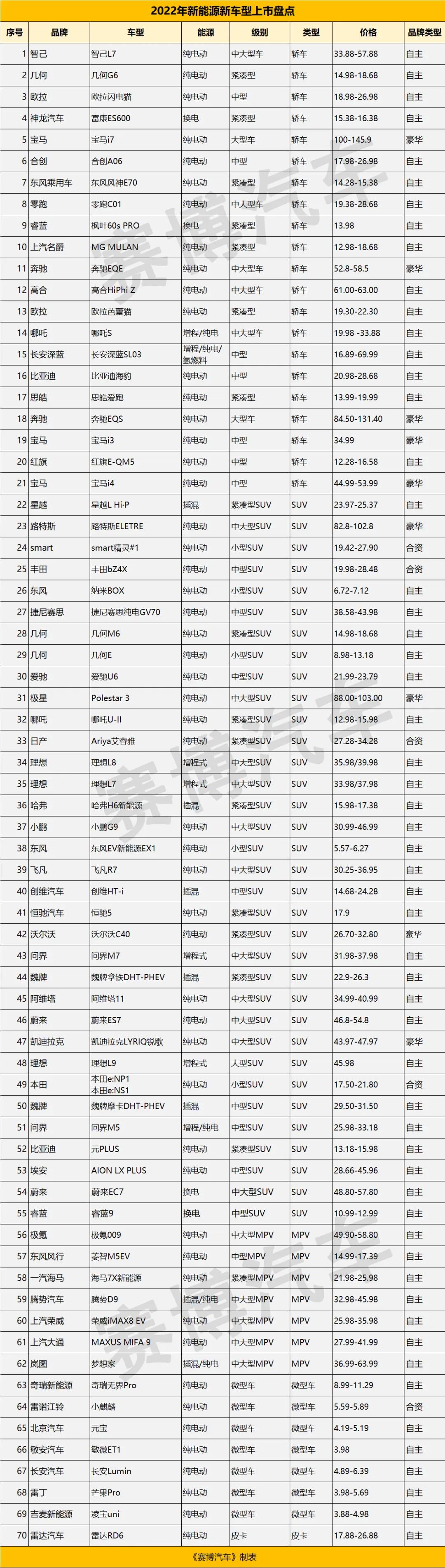 分析2022年新能源新车布局,我们可以看到几个趋势: