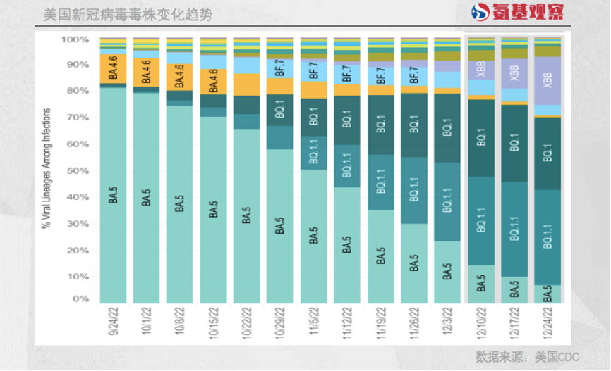 占据优势的BA.5毒株正被BQ1.1、BQ.1、XBB三个类型的毒株所替代。