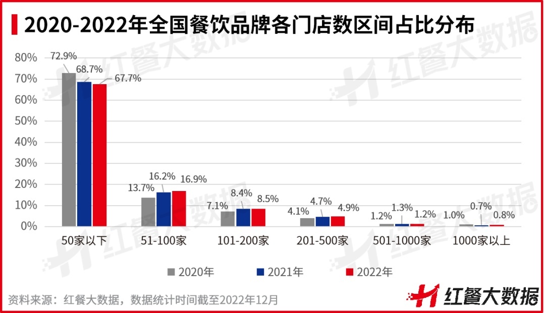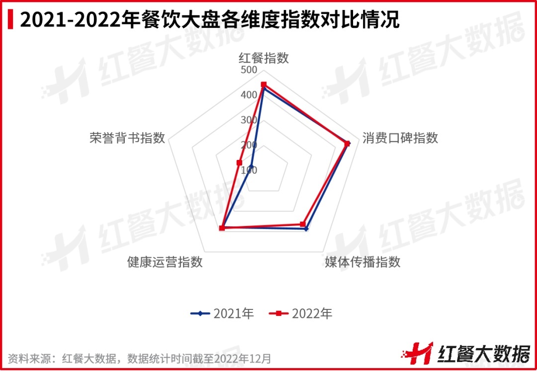 今年新冠疫情多点频发,加上全球政治、经济动荡,消费领域承受多种压力,餐饮品牌的发展也受到了诸多限制,但从红餐大数据来看,2022年餐饮品牌的红餐指数总体略高于去年,说明中国餐饮整体品牌力处于稳步提升状态。