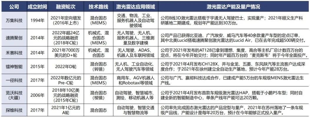 关键,由于自主厂商与下游主机厂深度合作,竞争优势逐步凸显,已进入量产爆发期。例如速腾聚创拿到40余款量产车型的定点订单;禾赛科技最新产品AT128拿到数百万台车的订单。