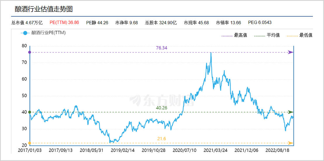 2021年前白酒板块就已历经多年上涨,在估值上也早已不同往日。