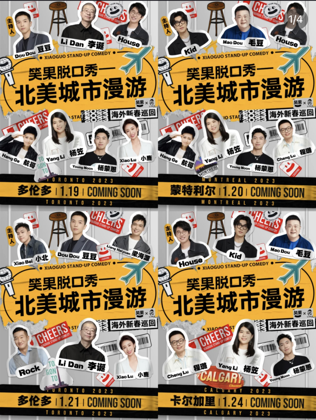 2020年初,李诞作为中国最知名的脱口秀表演者之一,曾有意在北美的温哥华、多伦多、圣荷西、洛杉矶、纽约五个城市开启自己的首轮专场巡演,而且还有呼兰和杨笠助阵,无论是当年还是如今,这都算得上是笑果的顶流阵容。