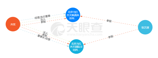此外,张艺谋还在另外一家由齐笑担任法定代表人、经理、执行董事并参股的公司担任股东,这家公司同样以“当红齐天”命名,全称为“北京当红齐天焕真科技有限公司”,注册资本为100万元,也成立于2008年,张艺谋在该公司持股10.81%。