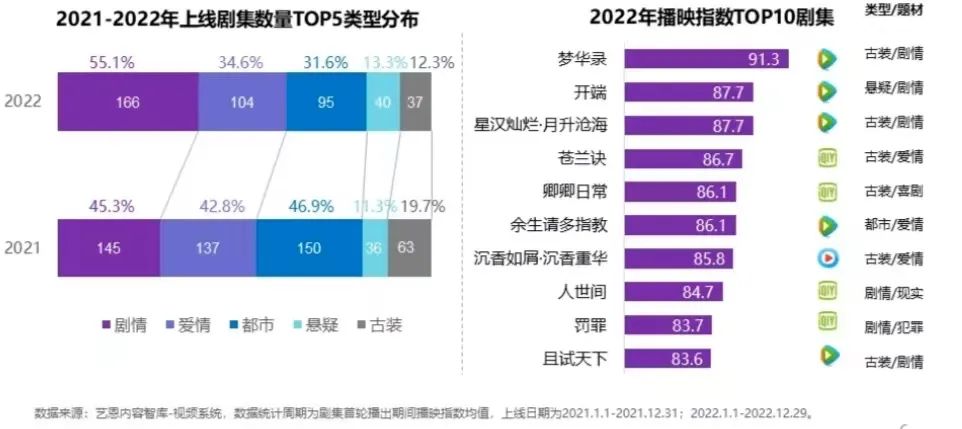 在接下来的整个2022年,在悬疑探案、古装爱情、都市家庭、青春情感等各个类型赛道中,都涌现出一系列推陈出新的作品。