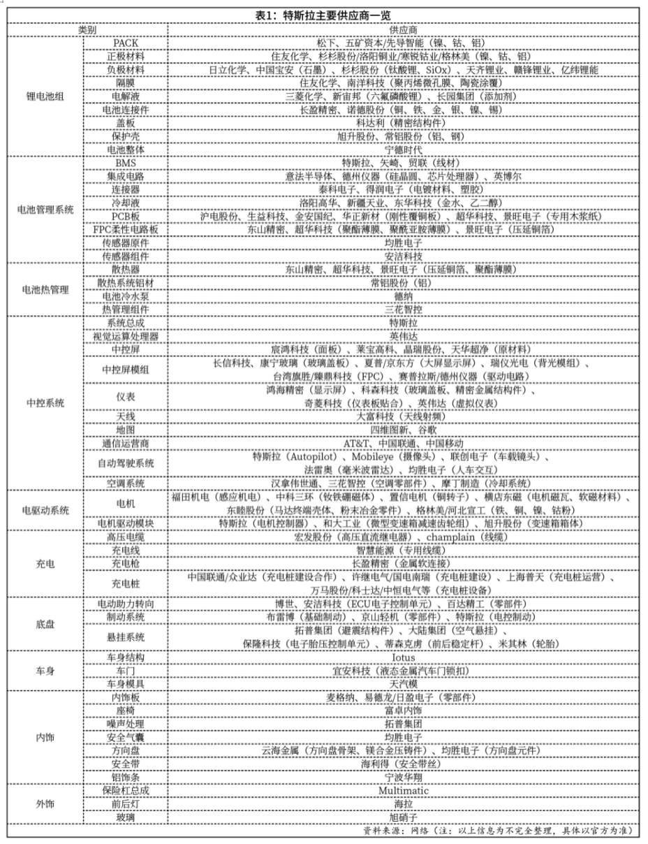 根据上图,特斯拉带动了相当一部分中国的供应商的业务。对于中国供应商来说,特斯拉来了,为了跟成本更低的中国品牌竞争,肯定要大规模国产,这导致供应链必然更倾向于中国本地厂商或者将原供应商引入中国。不管怎么样,特斯拉对应的供应链、产业链要在中国落地生根。这也就带动了中国的新能源汽车供应链。