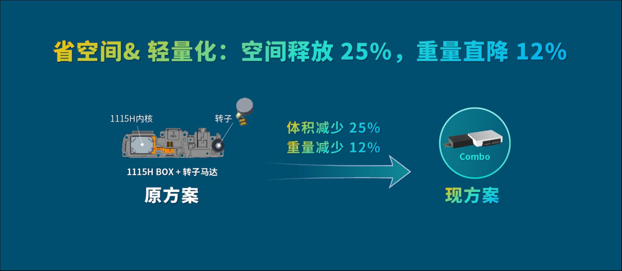 AAC瑞声科技推出的全新声学触觉一体化Combo方案,与业内常见的声学+触觉反馈方案相比,可释放25%空间,同时重量直降12%,可被运用于手机、可穿戴设备、AR/VR等领域。