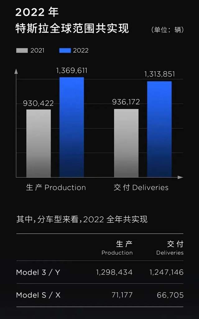 1月3日,特斯拉公布了2022年全球生产与交付报告。