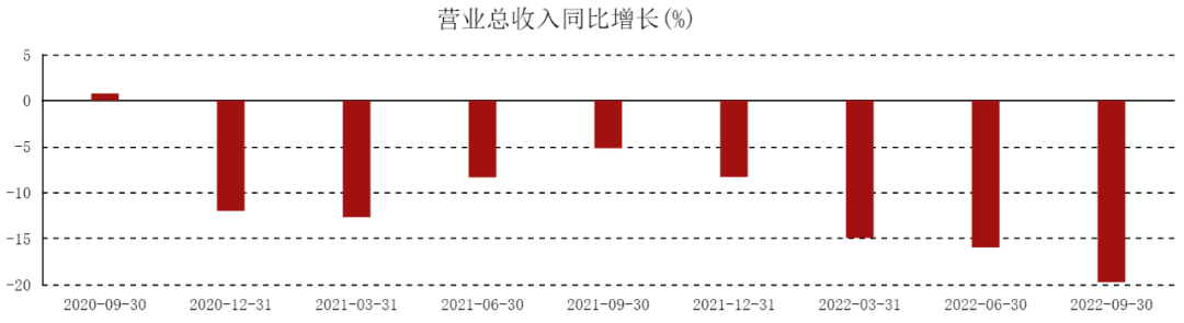 2020年,民生银行实现归母净利润343.09亿元,同比减少36.25%,成为当年上市股份银行中唯一负增长的银行,也是民生银行年度净利润首次出现负增长。2021年,民生银行营收1688亿元,同比下降8.7%。2022年前三季度,更是出现营收和利润双双下降,实现营收1085.96亿元,同比下降16.87%;净利润337.78亿元,同比下降4.82%。至此,民生银行已经连续八个季度营收同比增速下滑。