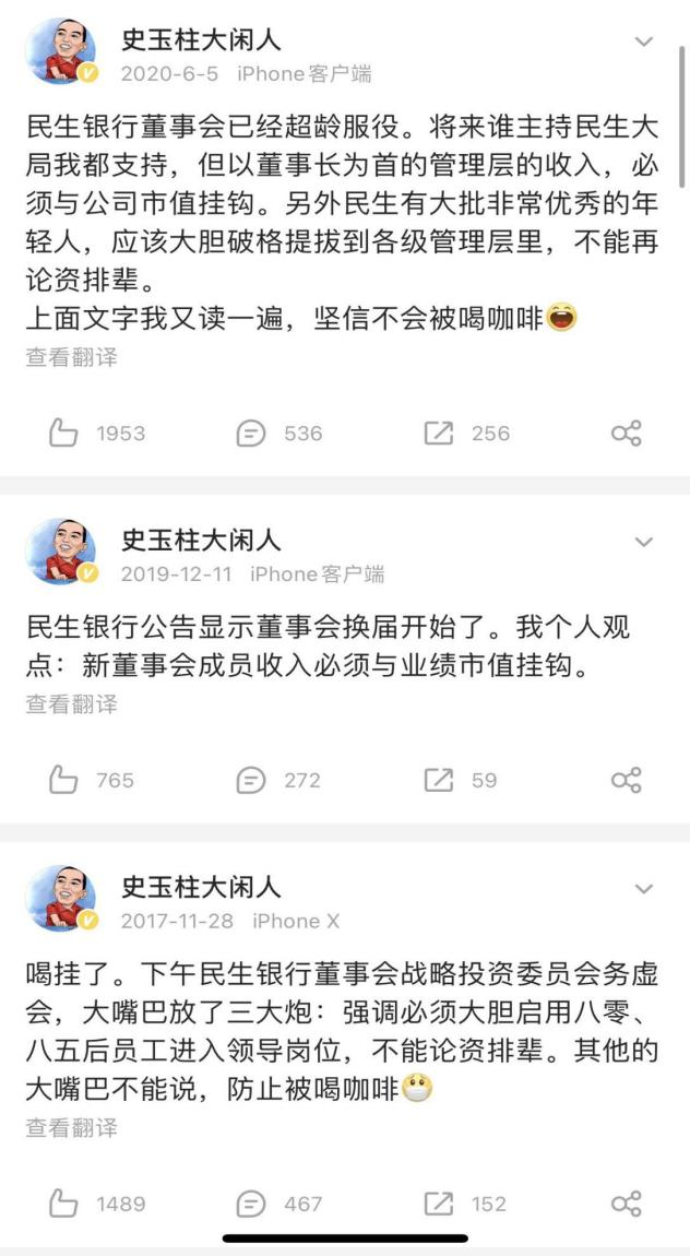 2020年6月,民生银行管理层迎来换届。面对一团糟的民生银行,最早的股东代表、非执行董事史玉柱都忍不住又一次“开炮”,提出三点:民生银行的董事长已经超龄服役(洪崎在任25年),管理层收入须与公司市值挂钩,要大胆破格提拔年轻人至各级管理层。