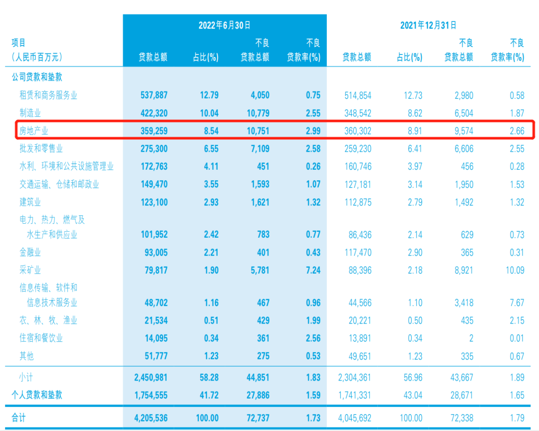 到2022年中期,民生银行的房地产业贷款总额为3592.59亿元,比上年末下降10.43亿元;但是,房地产业的不良贷款为107.51亿元,不良贷款率为2.99%,均较2021年末进一步上升。
