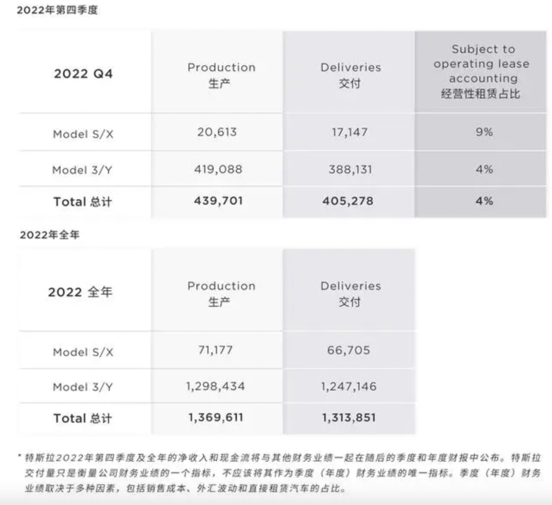 叠加四季度的销售数据,特斯拉交出的2022年总成绩单为131万辆,且不说远不及友商的185万辆,离自己年初立下的150万辆目标也尚有一定距离。