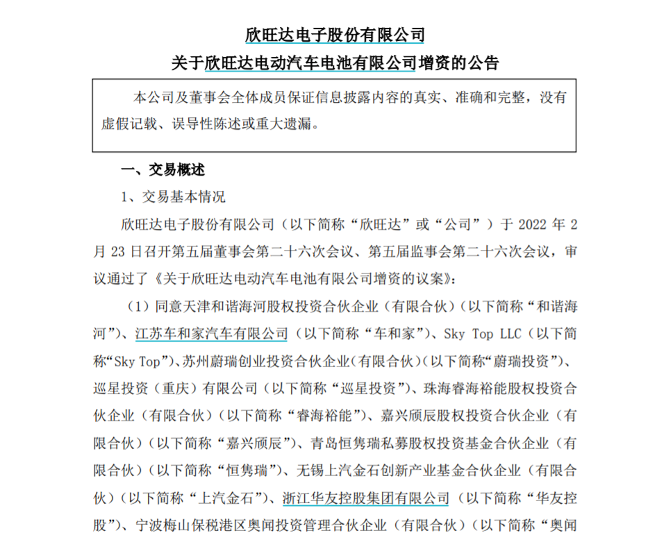 小鹏和理想虽然没有官宣造电池的计划,但它们同样关注电池领域的布局。 去年2月,电池厂商欣旺达宣布完成了价值24.3亿元的增资,其股东名单中除了蔚来之外,就有小鹏和理想。