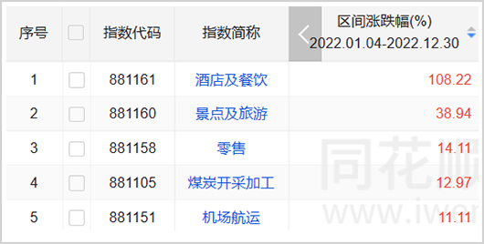 ▲2022年涨幅前5的行业指数,来源:同花顺问财