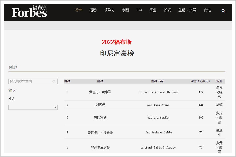 - [6]《福布斯公布印尼首富财富大幅提升,黄氏兄弟曾说“搞错了”》国际日报