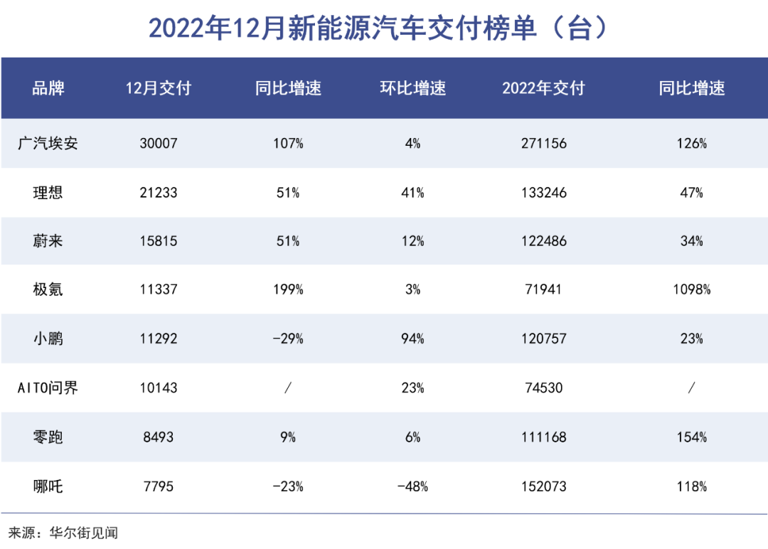 2022年,拥有传统车企背景的哪吒、极氪、零跑、埃安的增速都要远高于“蔚小理”。可见,造车新势力虽率先抢跑,但长期来看,传统车企的制造技术及产业链整合优势会进一步凸显。