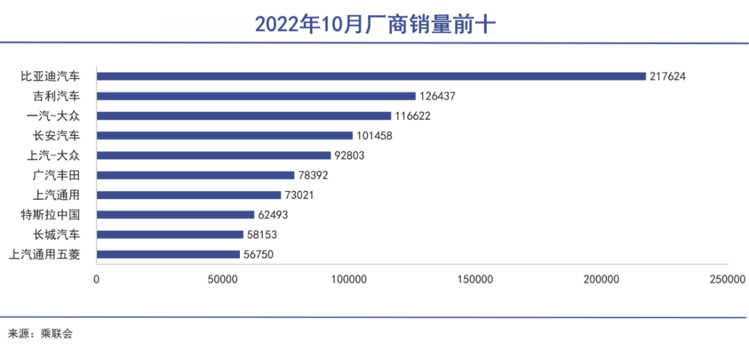 反观行业格局,龙头日渐稳固。尤其是比亚迪一骑绝尘,势头凶猛,其2022年11月份销量就超过一汽大众和上汽大众之和,创造了中国汽车工业史上的奇迹。