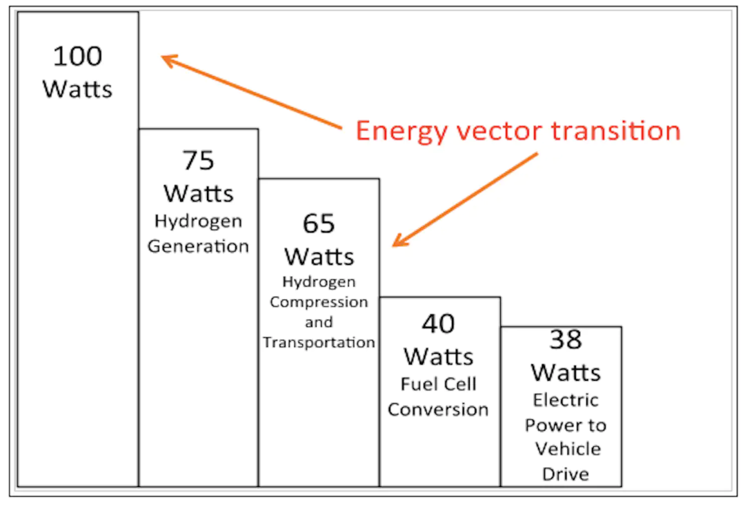 首当其冲的是氢的转化效率:从电解水制氢,到氢的压缩储运,再到转化为电能驱动车辆,这个过程中的损耗高达72%,而锂电池的损耗只有20%[2]。