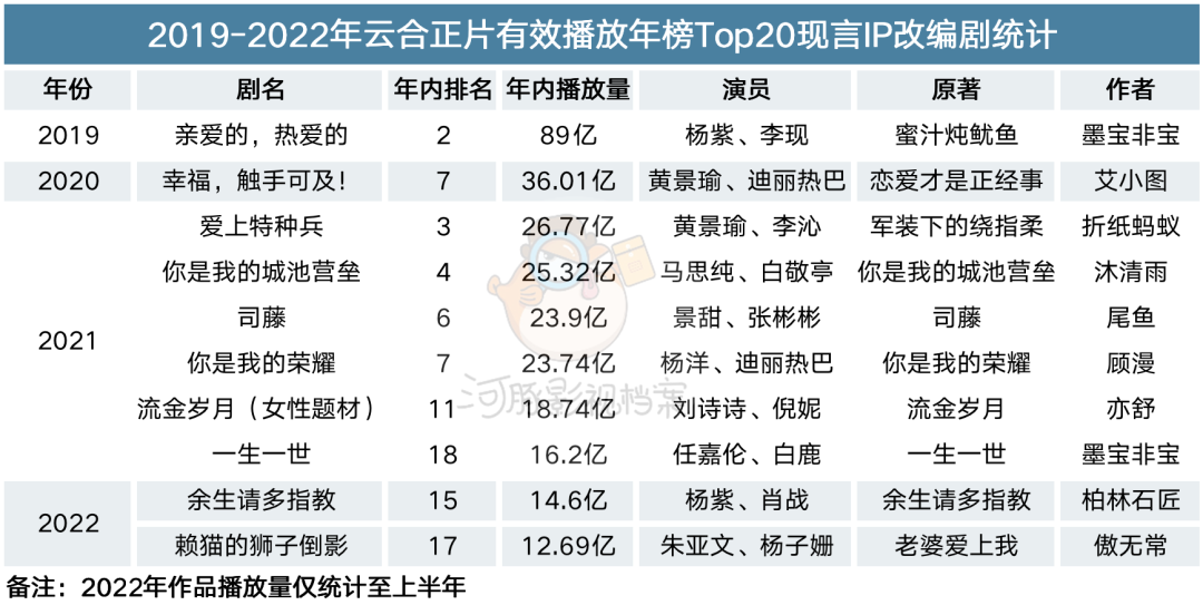 其实比起古偶,现言剧对IP的依赖在下降,对演员的依赖度在上升。