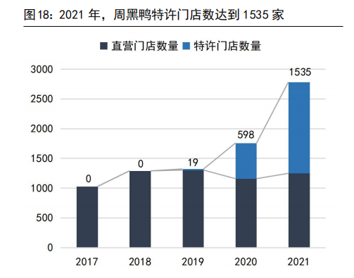 2019年底周黑鸭放开加盟,并将其视为公司的“第三次创业”。由于周黑鸭的品牌认可度高,在公司全链条的支持下,闭店率不超过10%,加盟门店的快速扩张平衡了公司的门店结构。