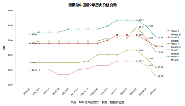 1月6日,特斯拉突然官宣,国产车型大幅降价,Model 3起售价下调至22.99万元,Model Y起售价下调至25.99万元,交付周期均为1-4周。其中,降幅最大的是Model 3后驱版,降了3.6万元,降幅达13.54%;Model Y长续航版更是直降4.8万元。