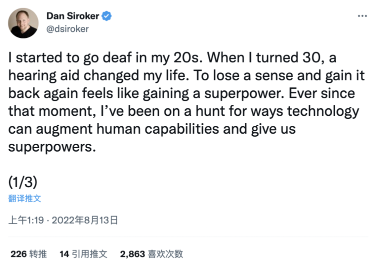 不仅有扎实的工作履历做底子,Siroker创办Rewind的动机听起来也很充分。他不止一次谈到自己年轻时候的遭遇,20多岁时开始失去听力,直到30岁才在助听器的帮助下恢复正常生活,他形容这种感觉就像“失去感觉并重新获得感觉就像获得了超能力”。从那以后他就开始思考起如何增强人类能力的问题。