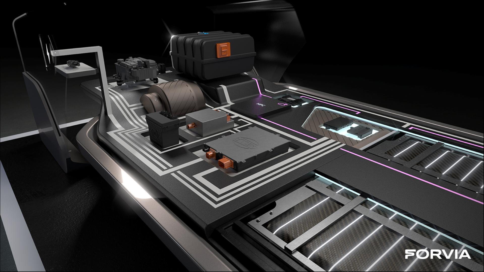 针对电气化与能源管理领域,FORVIA佛瑞亚集团发布了具有灵活性的零排放多动力系统平台,搭载可支持燃料电池电动、纯电动和混合动力系统的科技。在储氢系统方面,FORVIA佛瑞亚集团采用创新的方块式组合结构,与圆柱形储氢瓶相比,存储容量可以提升40%。