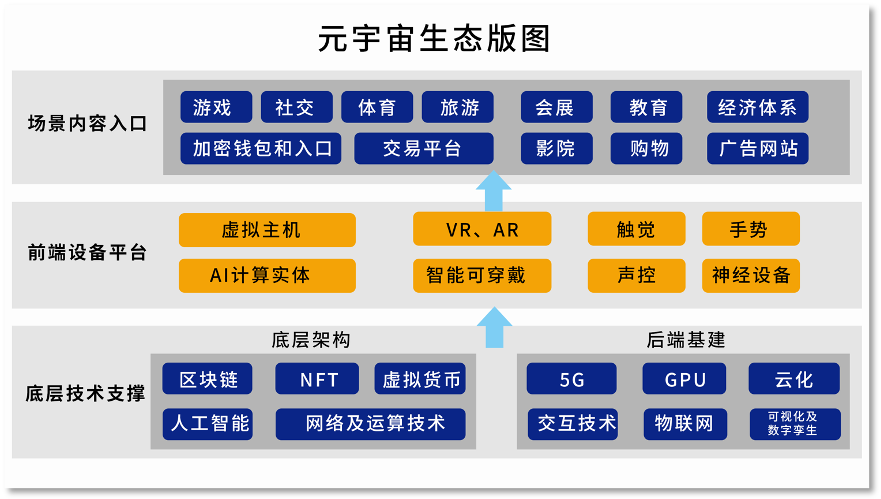 狭义上,元宇宙是依托区块链技术和多种数字技术共同构建的一个虚拟空间。广义上,元宇宙要包含算力、算据、能源这些物理性的基础结构,这就意味着要对虚拟空间乃至传统的全产业体系去升级和重塑。