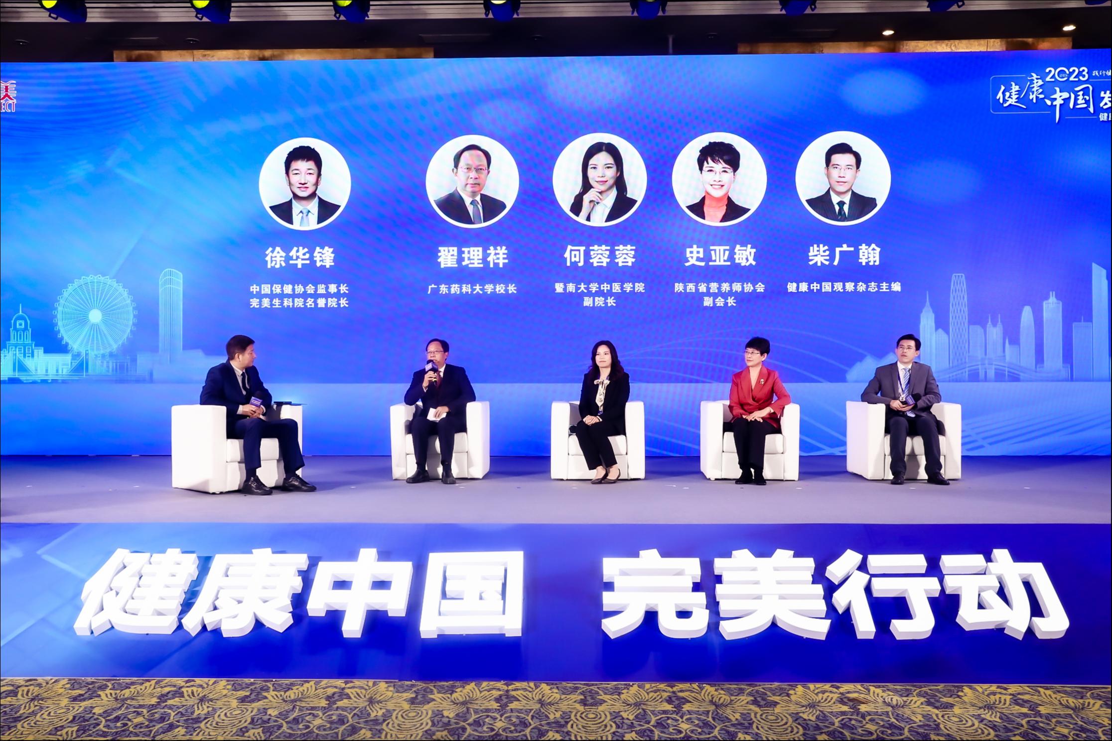 在由中国保健协会监事长、完美生科院名誉院长徐华锋主持的《科学管理 健康生活》主题圆桌对话中,广东药科大学校长翟理祥、暨南大学中医学院副院长何蓉蓉、陕西省营养师协会副会长史亚敏、健康中国观察杂志主编柴广翰结合自身专业领域与实际工作,围绕健康生活、健康管理和如何通过健康科普提升国民健康素养、企业在健康中国战略推进中的重要角色与作用展开了热烈讨论。