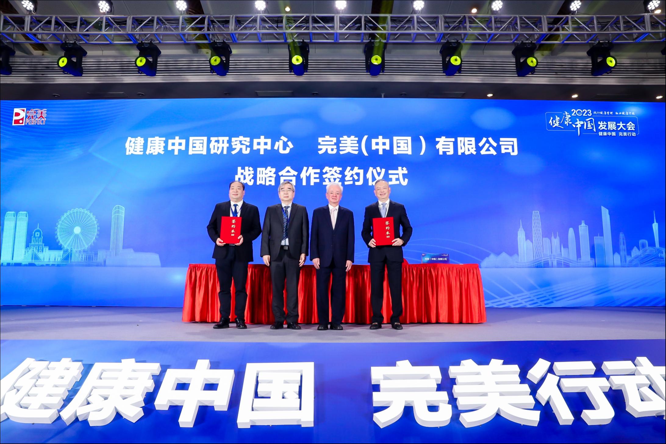 活动现场,完美公司与健康中国研究中心签署战略合作,并发布《完美践行健康中国宣言》,同时启动“完美践行健康中国2023-2025年计划”、“健康中国行动知行大赛家庭专场”活动。
