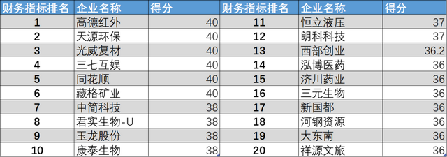 具体细分,在财务指标得分方面,高德红外等5家公司均得到了满分。整体看行业层面,国防军工、医药生物、美容护理和计算机排名前列,均是近两年增速较为迅猛的行业,值得注意的是,财务比例评分依据多源自于偿债能力,在申万一级三十个行业中,房地产目前排名倒数第一。